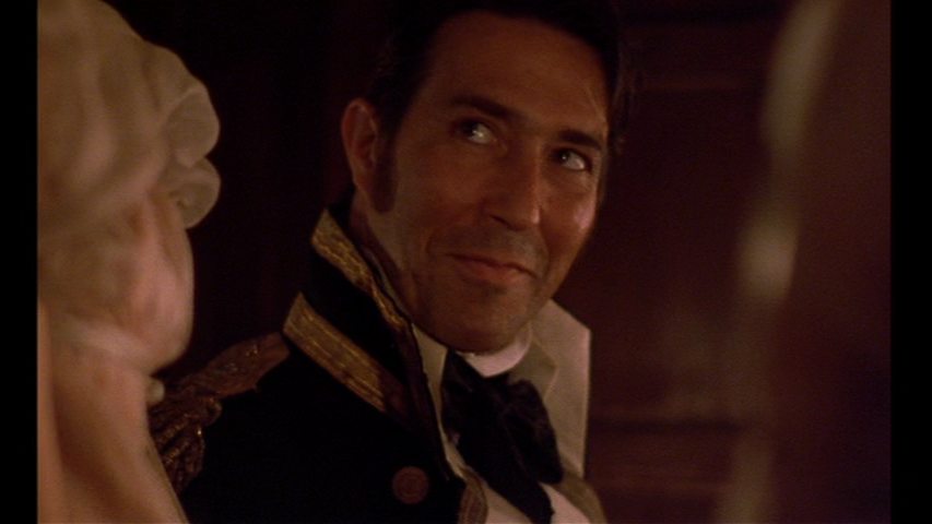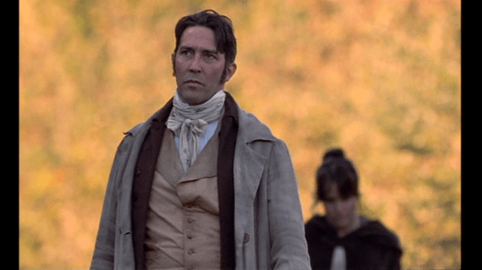 The movie suffered by comparison with the much prettier, glossier, and more heavily adapted version of Sense and Sensibility (written by and starring Emma Thompson) that emerged about the same time. By contrast, Persuasion feels realistic. Ladies do not wear makeup. Skirts are muddied, and clothing is wrinkled. Indoor spaces are often cramped and dark. Men are interestingly unshaven in the later hours of the day…