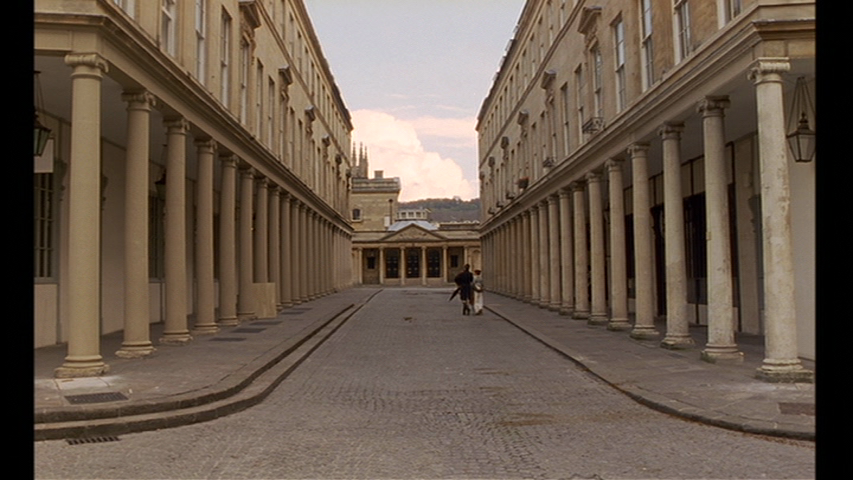 The phallic theme is not neglected in the film of Persuasion (Richards 2003.123). At one point during her stay in Bath, Anne unexpectedly meets Wentworth in a tea shop on a rainy day. They exchange a few words, and it is clear that Wentworth’s interest in her has been reignited. On learning that she is to walk home, he offers her his umbrella and she accepts. Then the ingratiating Mr. Elliot appears to escort Anne home, and she awkwardly hands the umbrella back to Wentworth, taking Elliot’s instead.