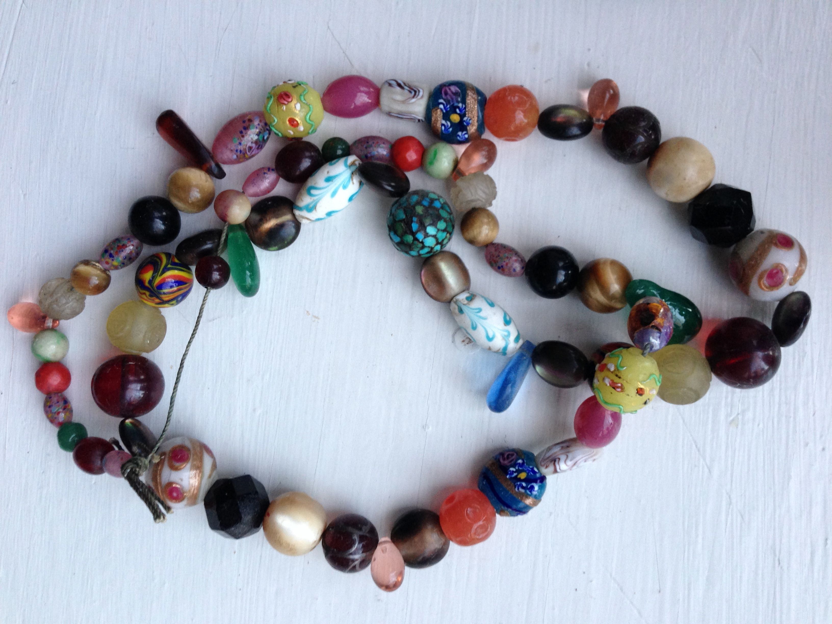 Here is an ethnographic item, a string of antique African trade beads. Each one is a tiny sculpture in itself.