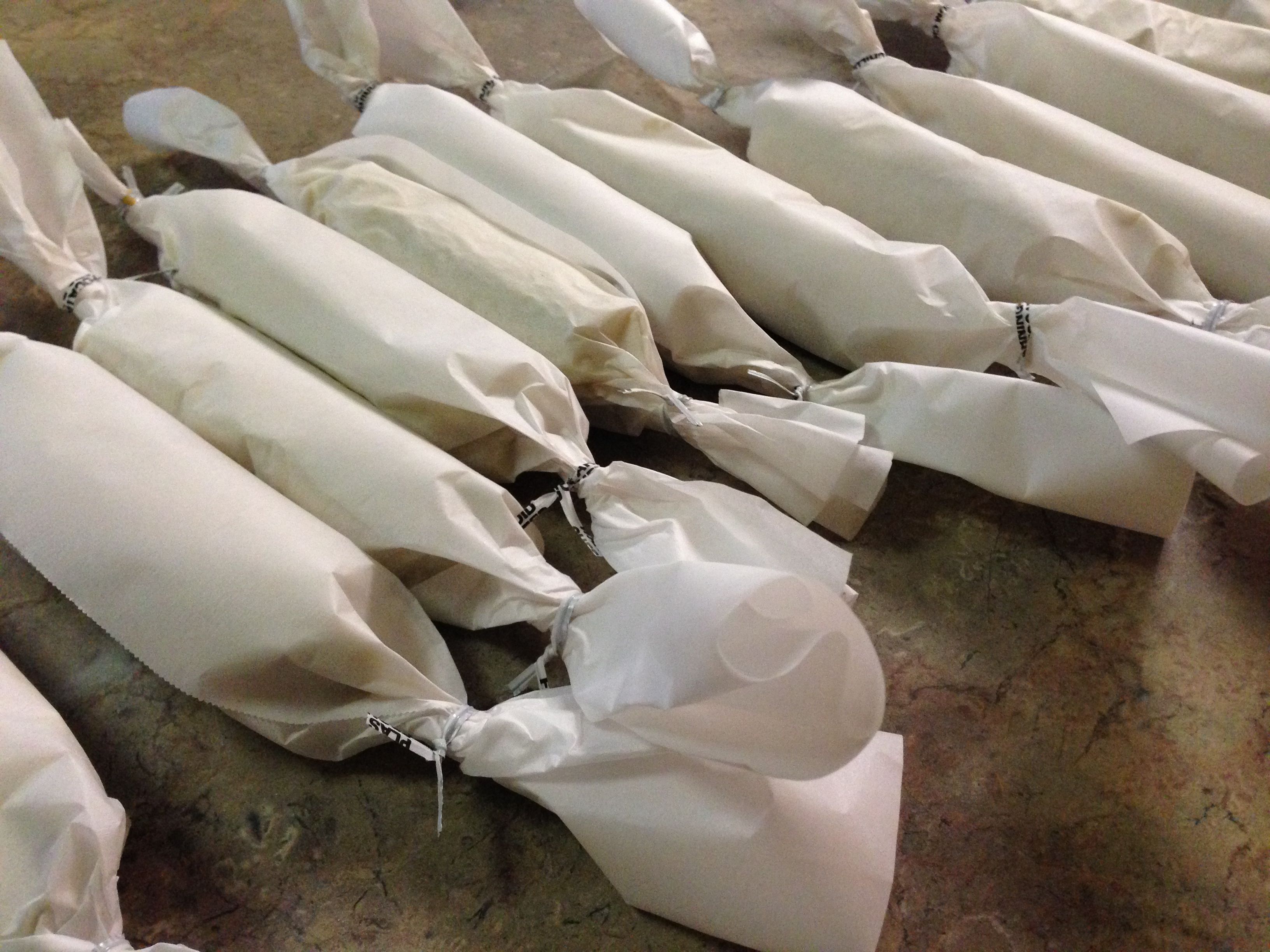 Little packages of goodness. I trim the edges of the paper off before putting them in the steamer.