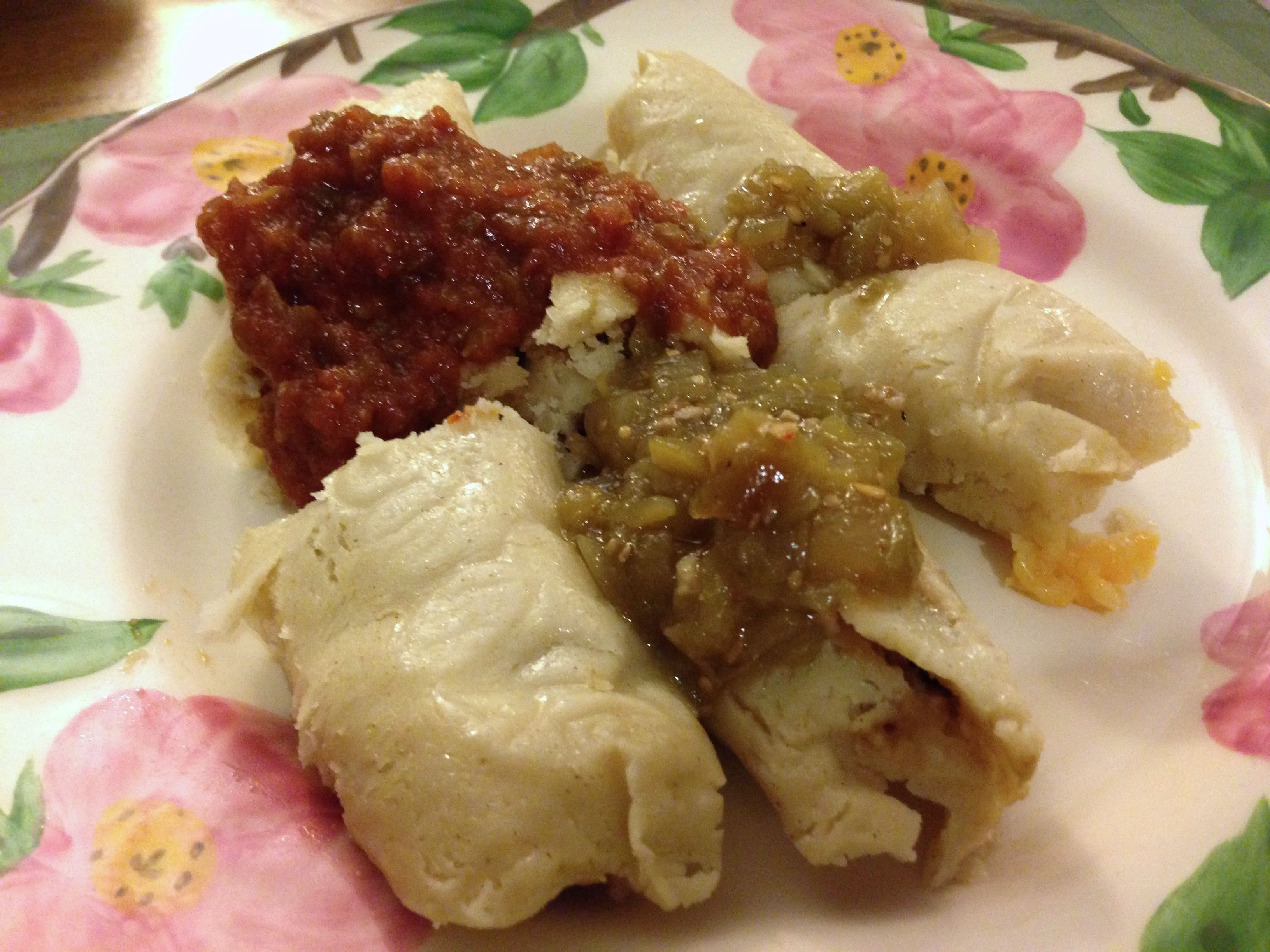 Dressed up tamales, from the second batch, which I froze and served a week later.
