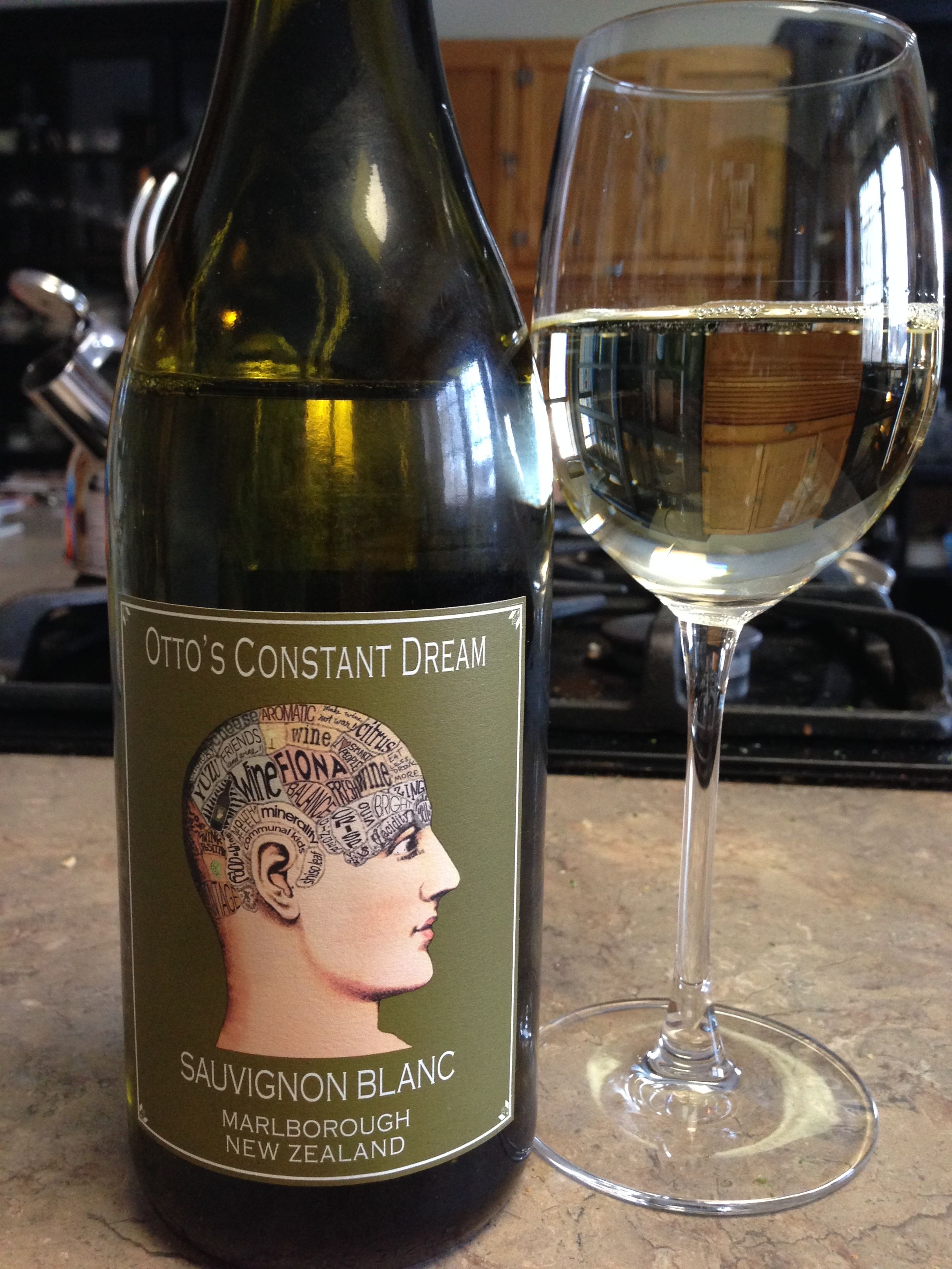 Usually it doesn’t pay to select a wine because of the cool label. This one is an exception. And it doesn’t hurt that Otto’s Constant Dream ($15.00) is a perfect exemplar of my favorite varietal and region: Marlborough Sauvignon Blanc.