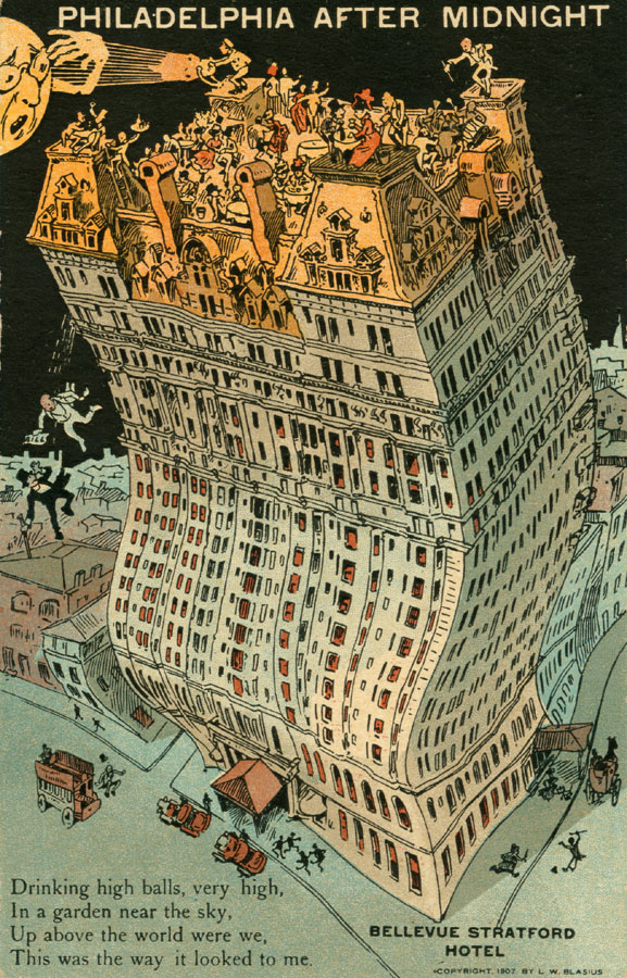 Still, the historic structure on Broad Street kept whispering its siren song. It was built in the French Renaissance style in 1904 by George Boldt (who also managed the Waldorf and Astoria hotels in New York). No expense was spared: there were light fixtures by Edison, windows by Tiffany, chandeliers by Lalique. Every US President since Teddy Roosevelt has visited the Bellevue. Its charms still enthuse lovers of old-time skyscrapers (from the days when nineteen stories was very impressive).