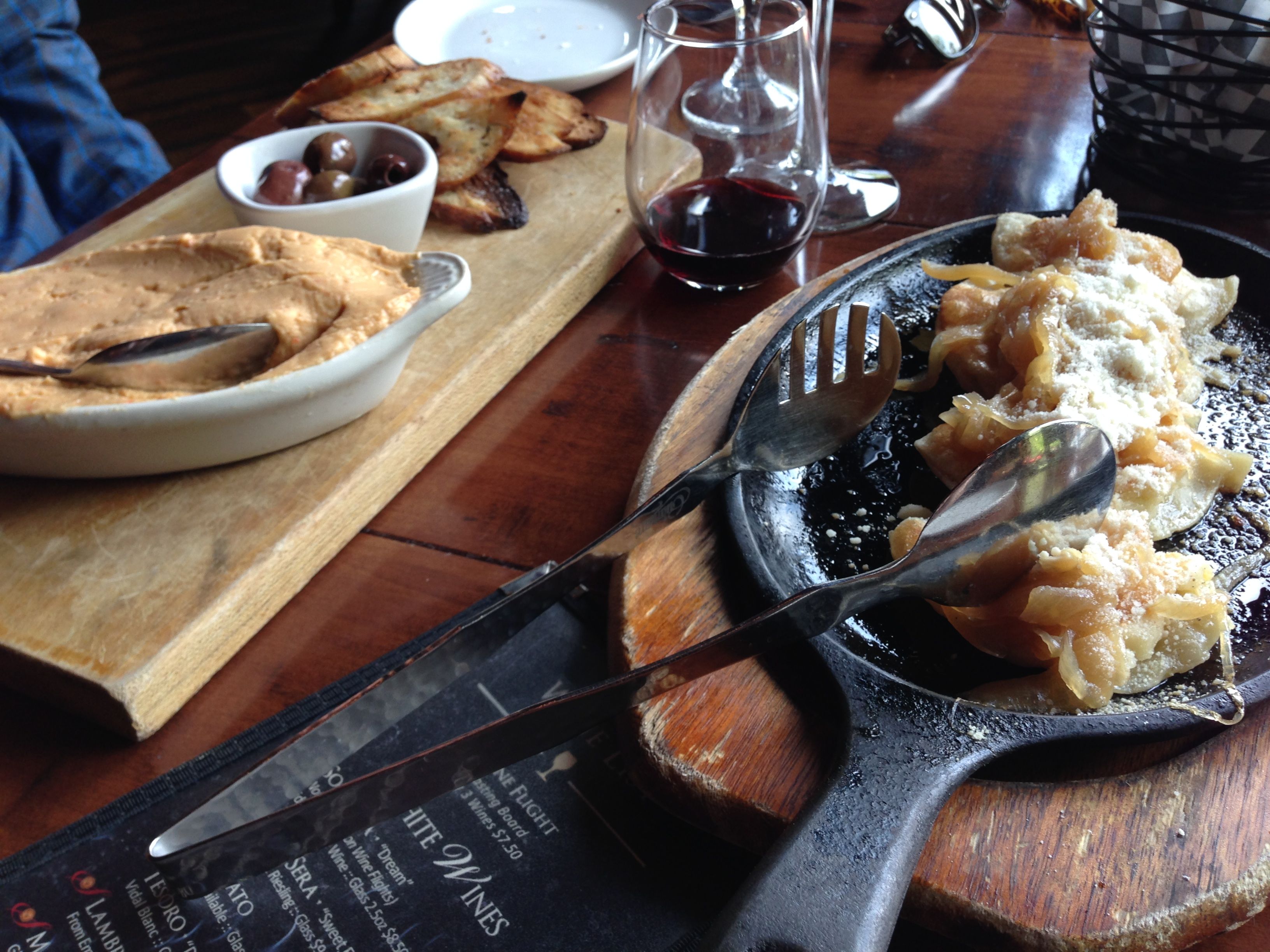 Appetizers: the hummus was fine but nothing special. The cabbage, potato and gouda pierogis with caramelized onions were superb.