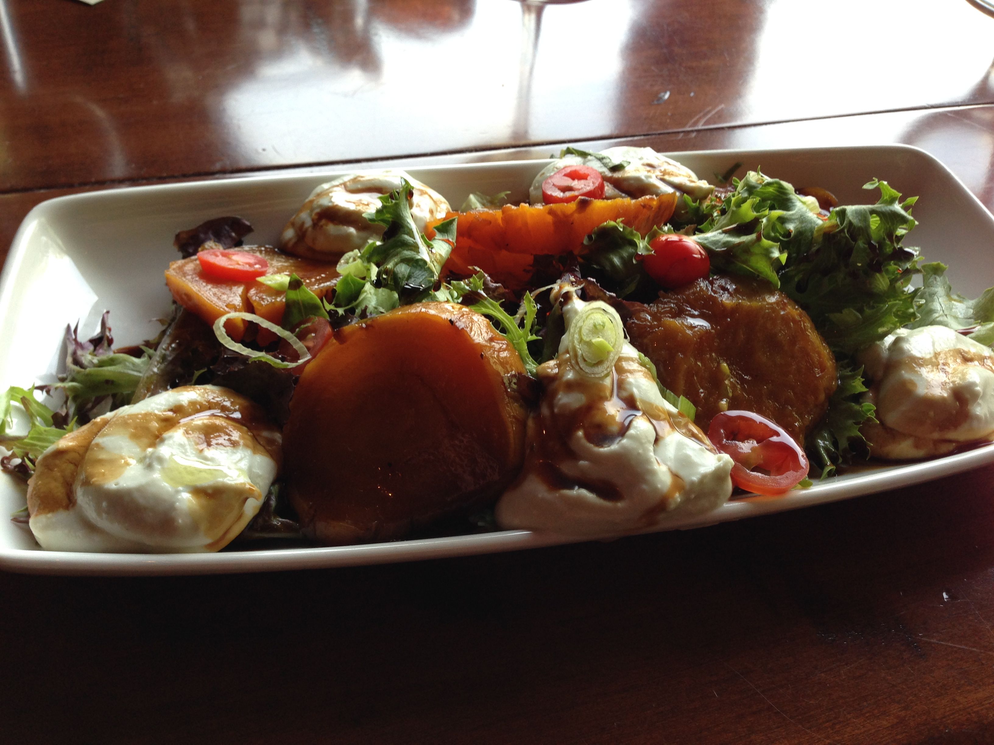This sounds like a visit to heaven. There are several red varietals there I have yet to try, as the are not common in California, so I am eager to try the Nebbiolo, Barbera, Barolo, and Abbraccio (I do love Cabs.) I might actually like the Amarone, especially after dinner with cheese. Through the Summer I have been enjoying a lot if Sauv Blanc myself. But the food here! I already love a nice Caprese, but the “cabbage, potato and gouda pierogis with caramelized onions” and golden beet salad look and sound out of this world!