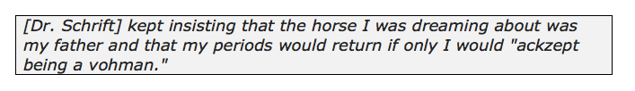 Like Portnoy’s Complaint, the book locates, limits, and dates itself by the prominence it gives to psychoanalysis. Everyone in New York in the 1960s and 70s, it seems, was on the couch. The male psychoanalysts around Isadora assume that all female problems are caused by penis envy or a daddy-wish or both. But they’re way off base.