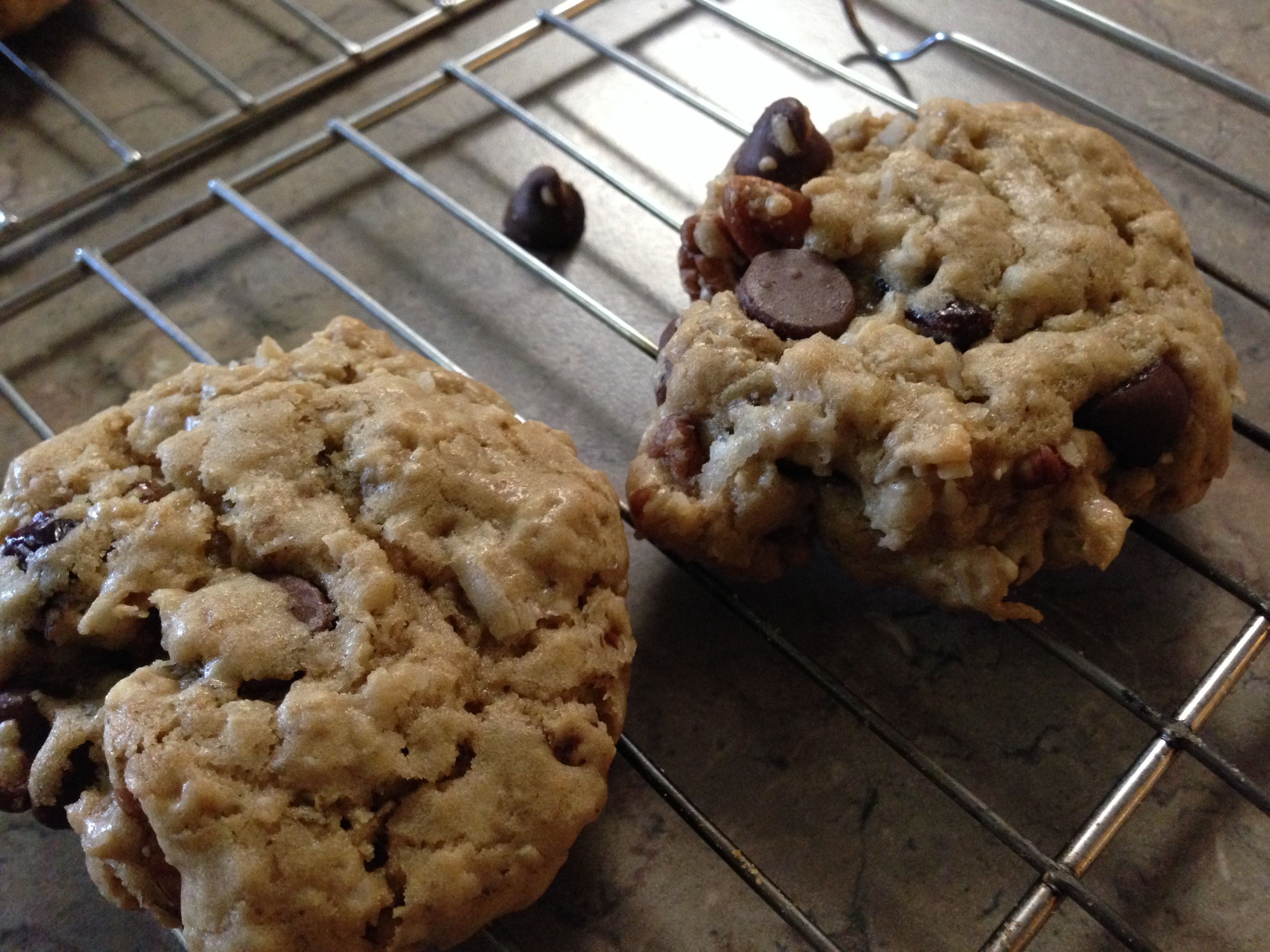 Nobody seems to know why this oatmeal-based treat with toasted pecans, coconut and chocolate chips is called a Cowboy Cookie. Or why variations are called Cowgirls. Maybe it’s a Cowgirl when the good bits get to be on top.