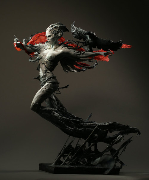 Mixed media sculpture of the Morrigan by Forest Rogers. She seems to be flying over a battlefield, and I like the sweeping movement in this piece.