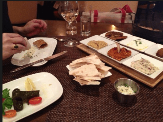 After dropping off our bags, we often stop in at Pera, a Mediterranean restaurant, for a glass of wine and some mezze.
