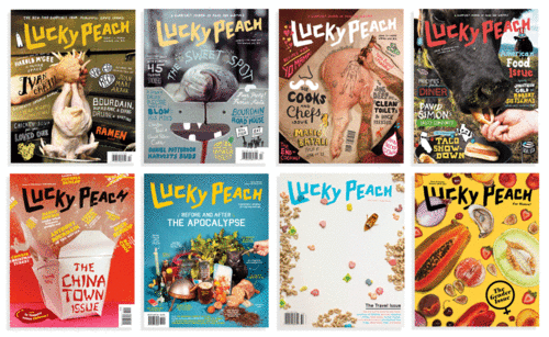 The demise of innovative mag Lucky Peach was recently announced, much to the dismay of everyone who takes food and food writing seriously. Created by Chris Ying, David Chang and Peter Meehan, Lucky Peach broke new ground with its cool graphics and aesthetic of fun à la Mad, Spy, and The National Lampoon. It was the journalistic equivalent of eating at a hip restaurant run by a smart, creative young (mid-to-late-30s) male chef.