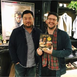 David Chang and Peter Meehan with a Lucky Peach Asian cookbook. Photo: Exploregram.