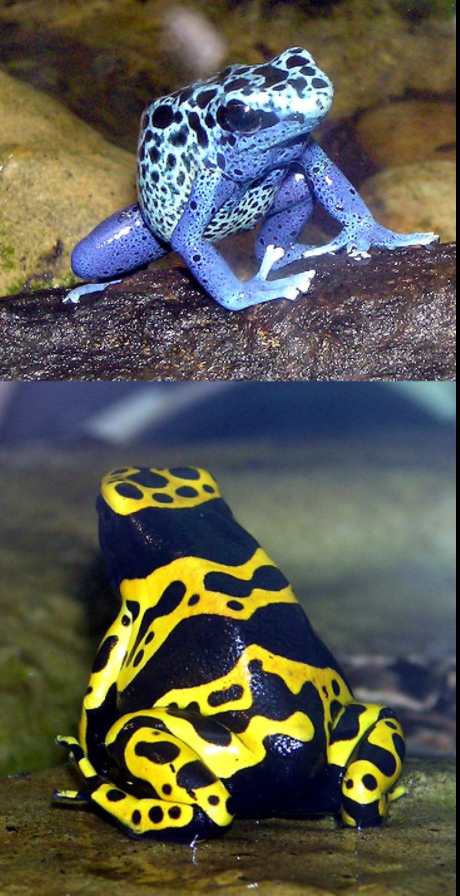Members of the family Dendrobatidae (“Tree Walkers”) in South America are highly poisonous. The bright color warns predators not to eat them.