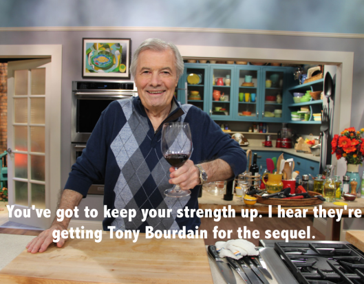 Thank you, Karen. Yes, I toyed with having Darkchoc be the smiling, Buddha-like Dorbz Steppenwolf. But when I thought of Jacques Pepin as Glinda the Good Witch, I couldn’t resist. Too bad I don’t have the technical expertise to put him in tulle and a tiara…