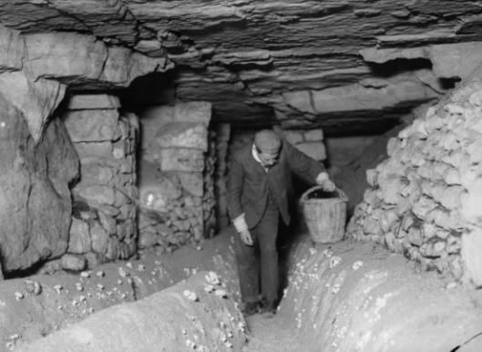 Mushrooms grown in a Parisian quarry. Photo: Mairie de Paris-Inspection Générale des Carrières. Click for source (Gastro Obscura)