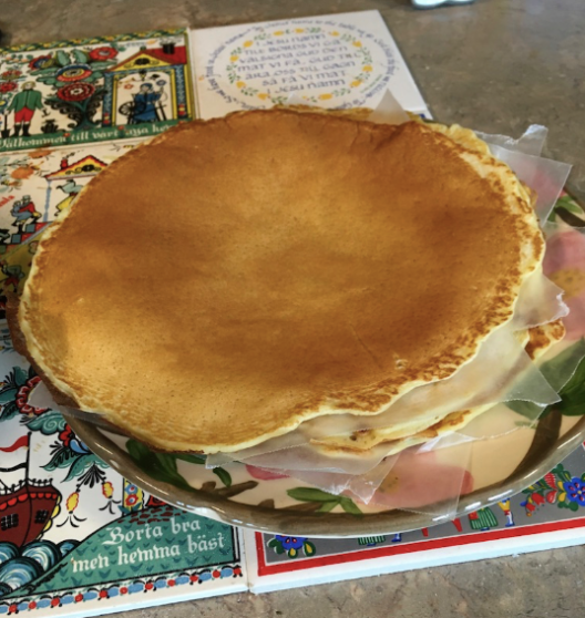 Step 1: Thin out what’s left from the morning’s huge batch of pancake batter and add an egg to enable bigger, more elastic and rollable pancakes.