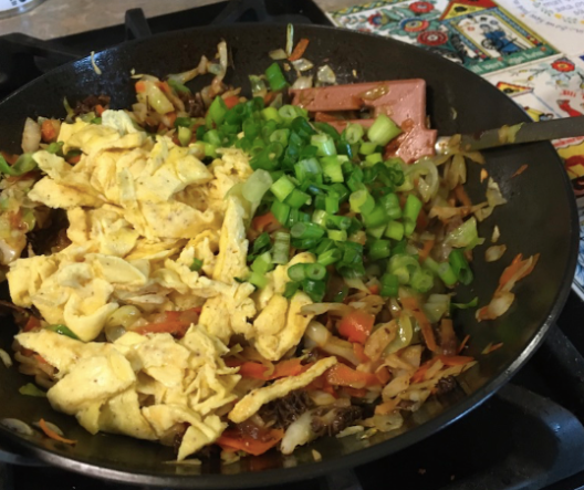 Step 3: Add shredded egg omelet and the very last two scallions.
