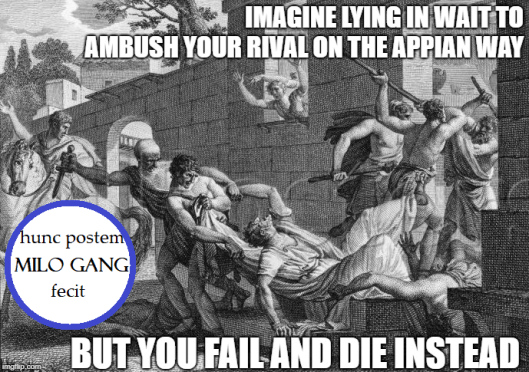 Historical note: The part about Clodius and Milo getting into a fight is accurate. This happened in 52 BCE.